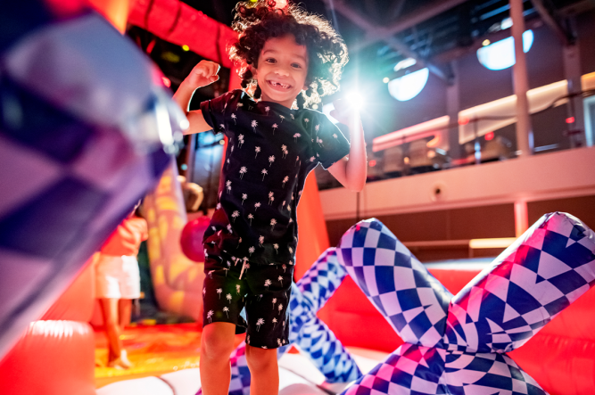 Faites des vagues! Le soleil et le plaisir sont de la partie sur les ponts supérieurs du Disney Wish qui abrite 10 piscines et zones de jeux aquatiques, une glissade d’eau et bien plus; le tout inspiré de Mickey et ses amis. Ou jouez dans la Toy Story Splash Zone avec des jouets en caoutchouc pour le bain plus grand que nature et la glissade familiale Slide-a-saurus Rex.