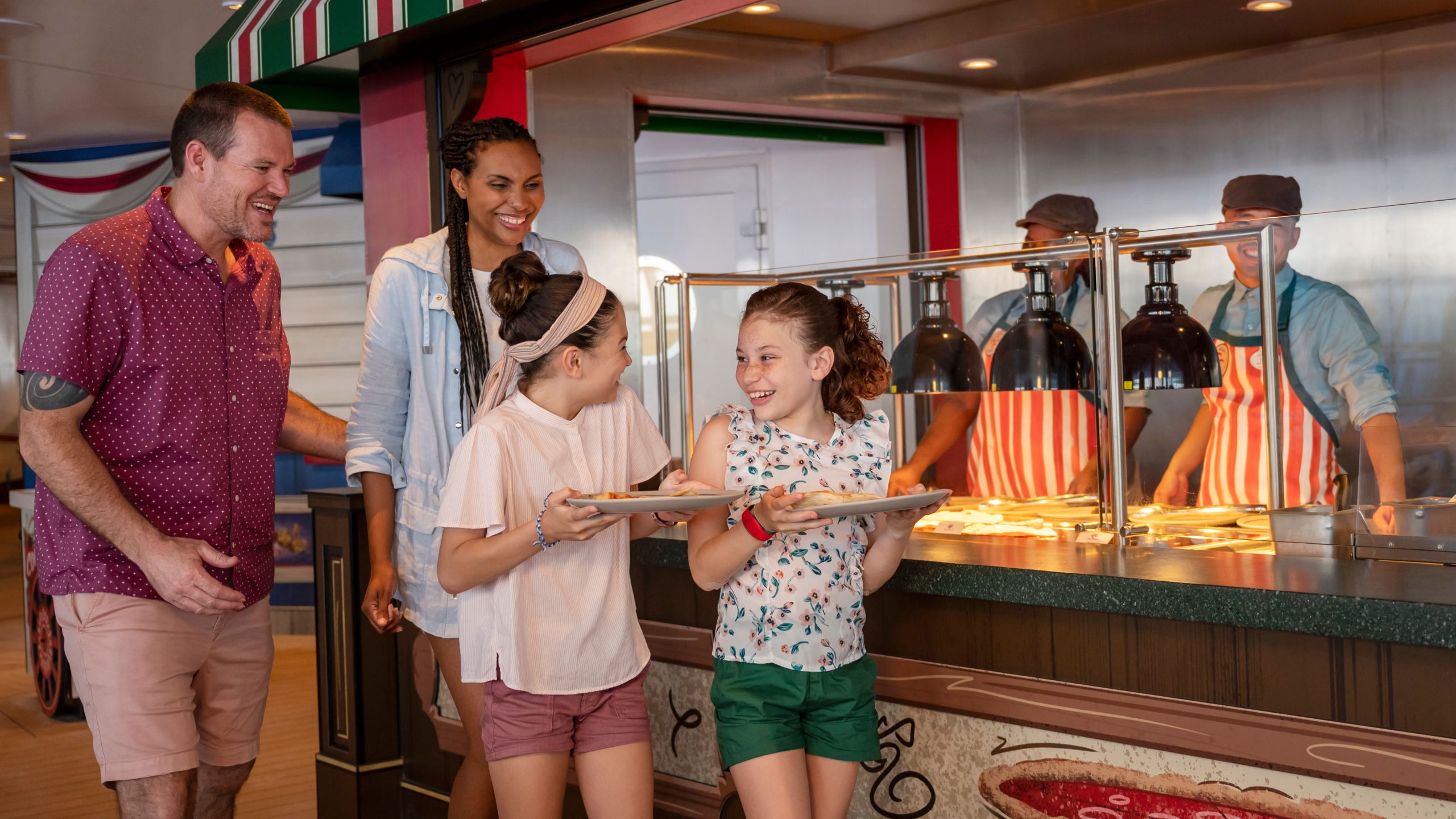 Lanza aros en Hero Zone, expresa tu lado travieso durante Pirate Night o ve películas taquilleras de Disney, Pixar, Marvel y Star Wars. Tus vacaciones en Disney en el mar son una aventura llena de diversión diseñada para mantenerte entretenido desde que sale el sol hasta la medianoche.