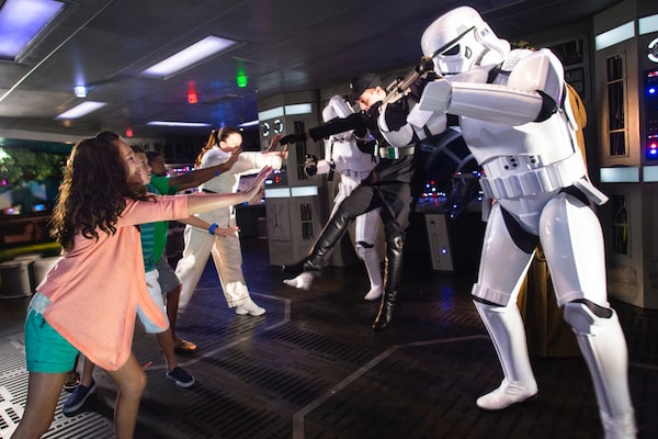 Train with X-wing pilots, connect to legendary space crafts via an interactive “holotable” and combat First Order Stormtroopers. Available on the Disney Fantasy.